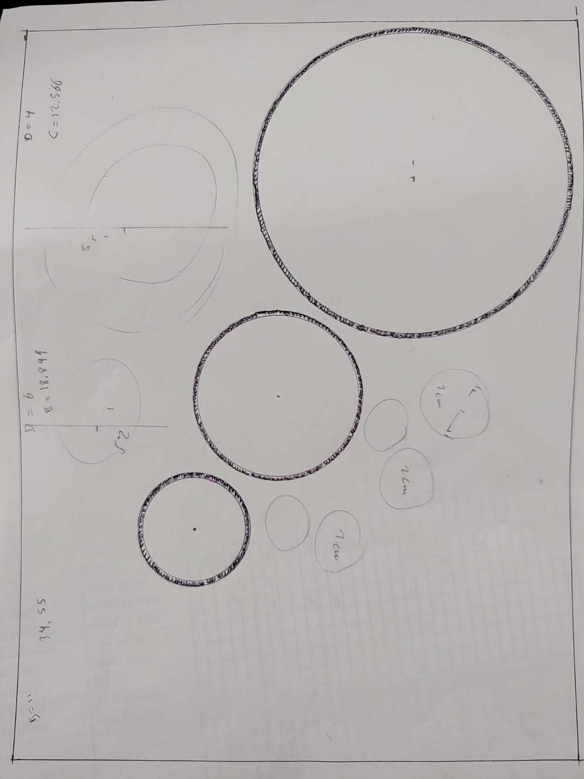 15 de Enero --Actividad 25 -- Trazar las siguientes figuras Desarrollo parcial -- Figura 5 -- Dibujará 11 círculos Con r1= 5.5 cm, r2=3.5 cm, r3= 3 cm, r4= 2.5cm, r5= 2.5cm,y 6 círculos de radio 1cm.